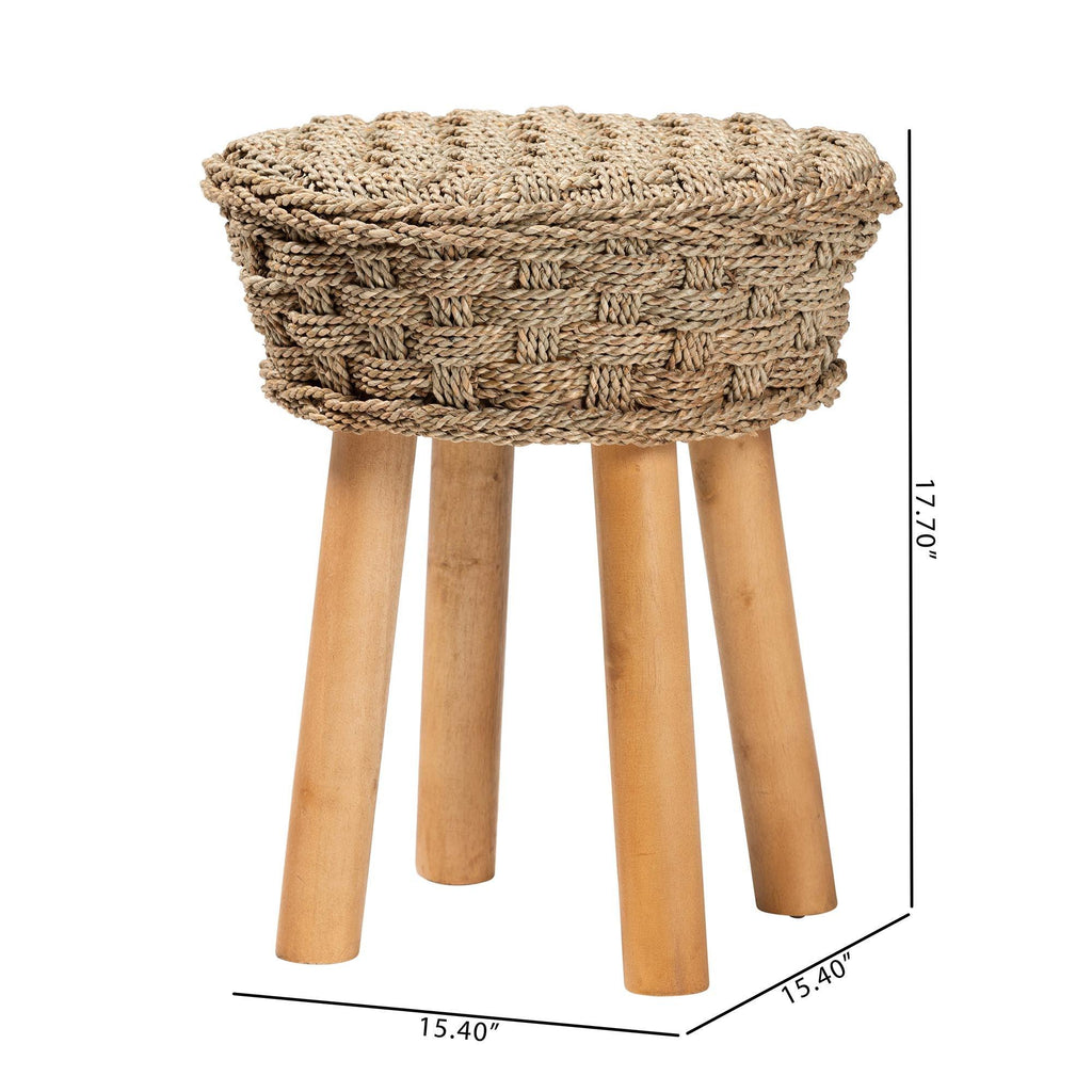 bali & pari Denver Modern Bohemian Seagrass and Acacia Wood Stool