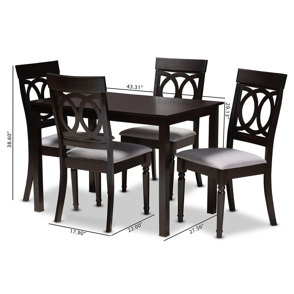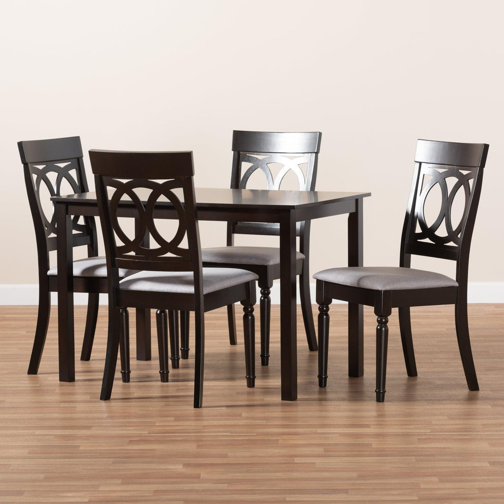 Lucie Modern and Contemporary Fabric Upholstered Espresso Finished 5-Piece Wood Dining Set