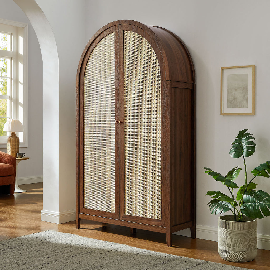 Calista 79" Tall Wide Rattan Arched Storage Cabinet