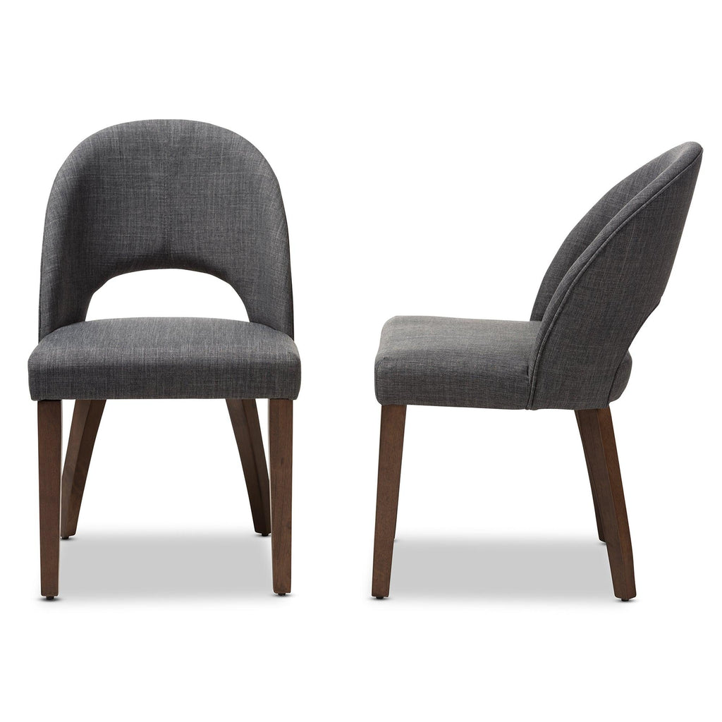 Wesley Mid-Century Modern Dark Fabric Upholstered Finished Wood Dining Chair (Set of 2)