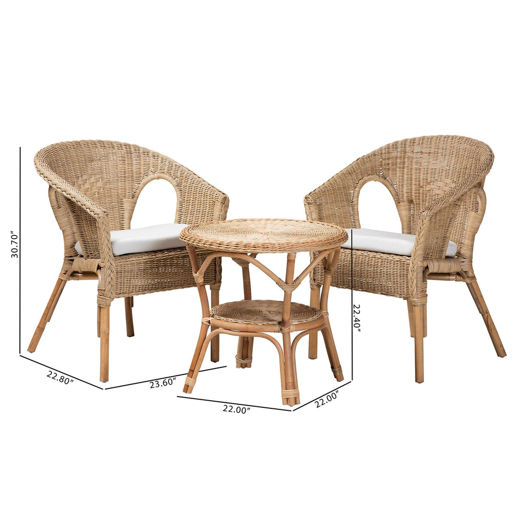 Abbey Modern Bohemian Antique Rattan 3-Piece Living Room Set