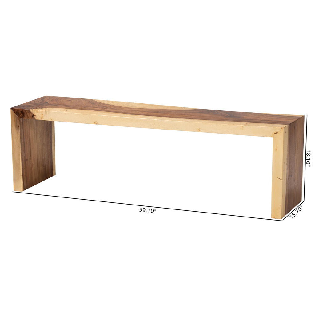 bali & pari Bai Solid Suar Wood Accent Bench - Modern Rustic Wood Seating for Entryway, Dining, or Living Room