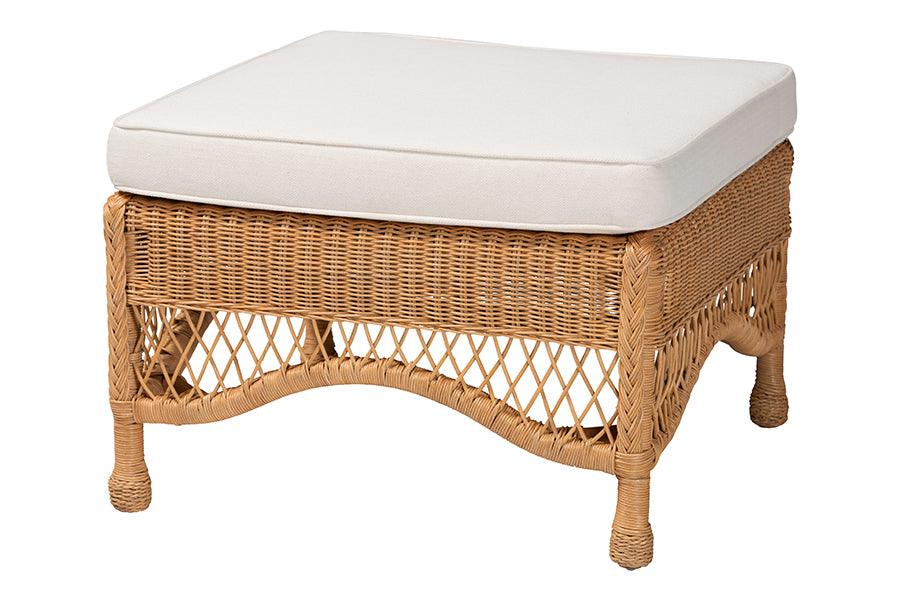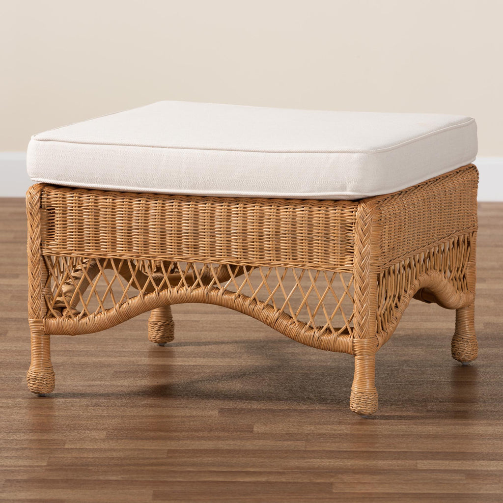 bali & pari Brooklyn Bohemian Light Honey Braided Rattan Ottoman Stool