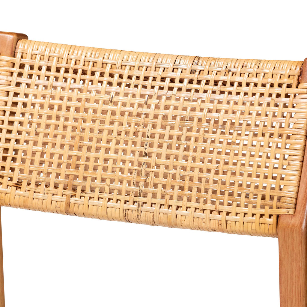 bali & pari Chatura Rattan and Mahogany Wood 2-Piece Bar Stool Set - Handwoven Wicker Stool with Angled Back, Coastal Boho Seating for Lounge, Bar Height