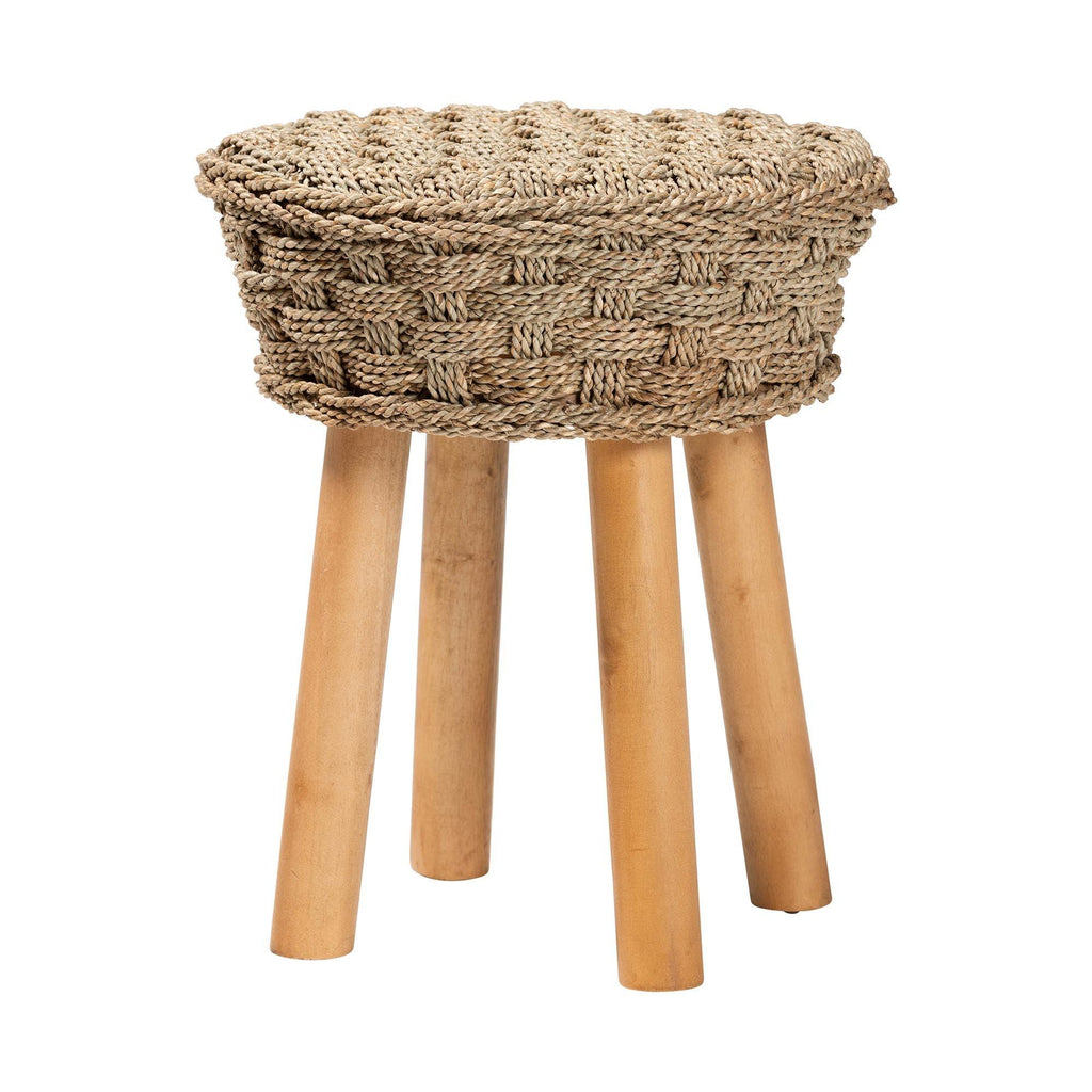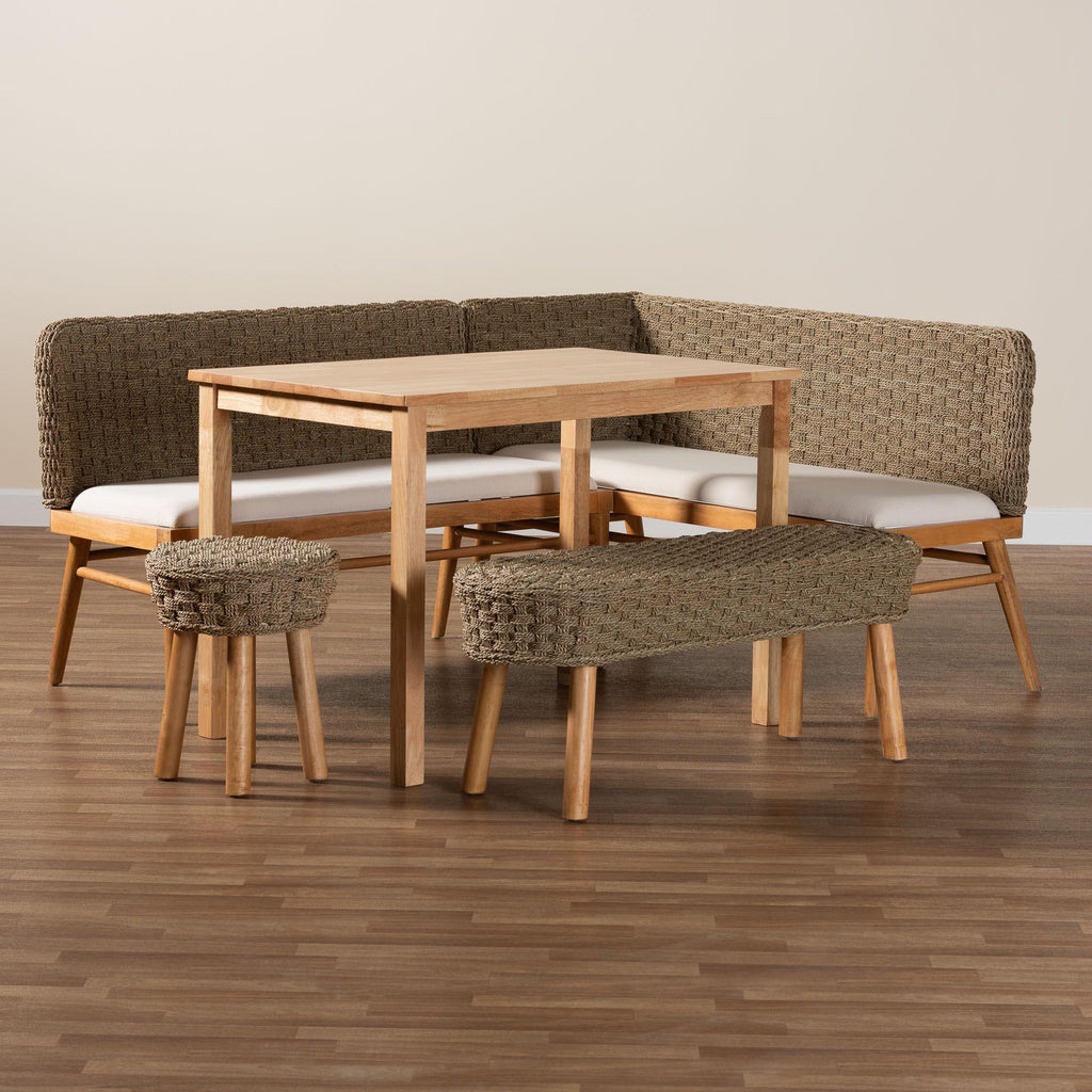 bali & pari Denver Modern Bohemian Seagrass and Acacia Wood 5-Piece Dining Nook Set
