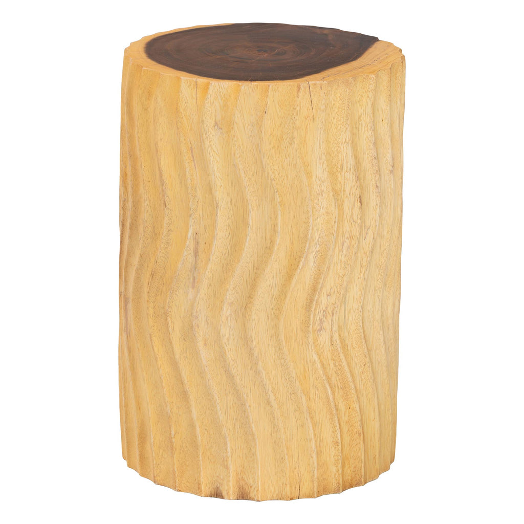 bali & pari Fuchsia Hand-carved Suar Wood Side Table - Round Sculptural Accent Table with Wave Design, Modern Boho Rustic Style for Living Room or Bedroom