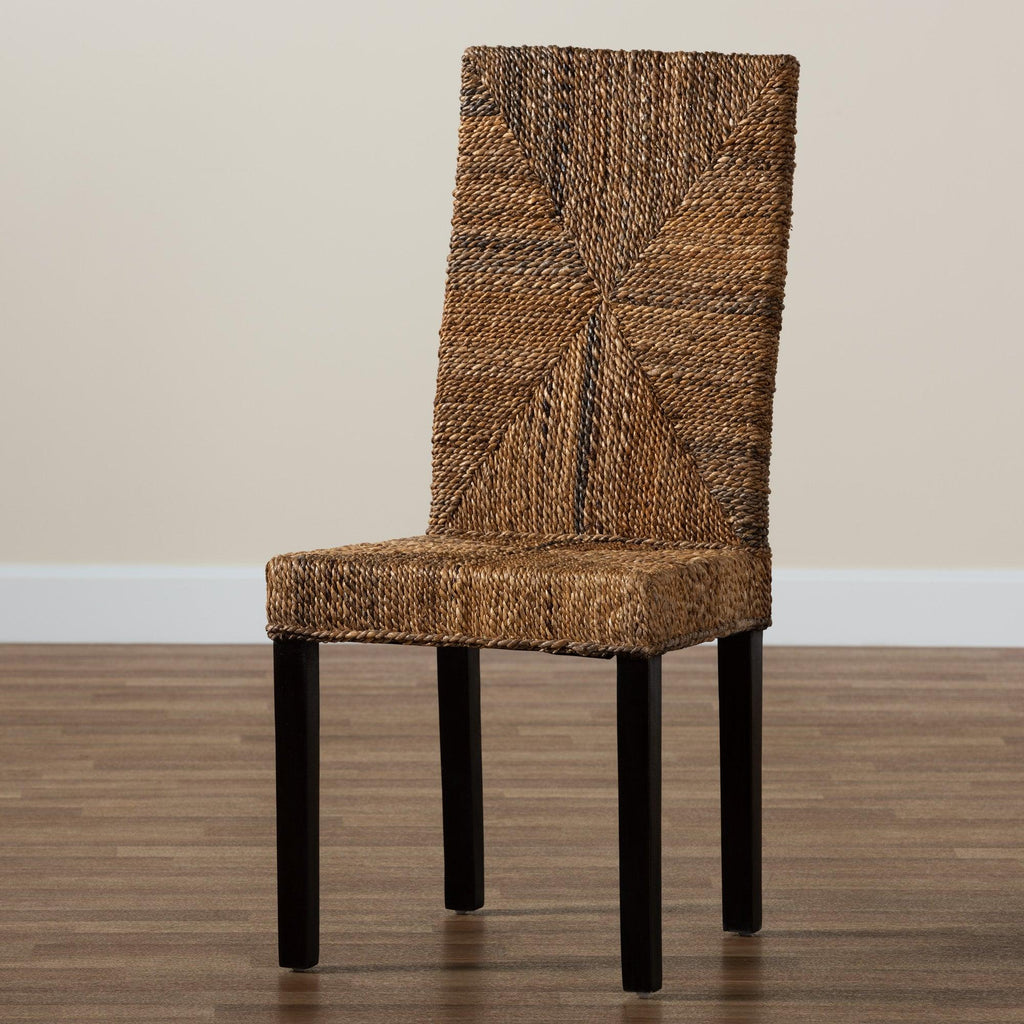 bali & pari Laymi Modern Bohemian Mahogany Wood and Seagrass Dining Chair