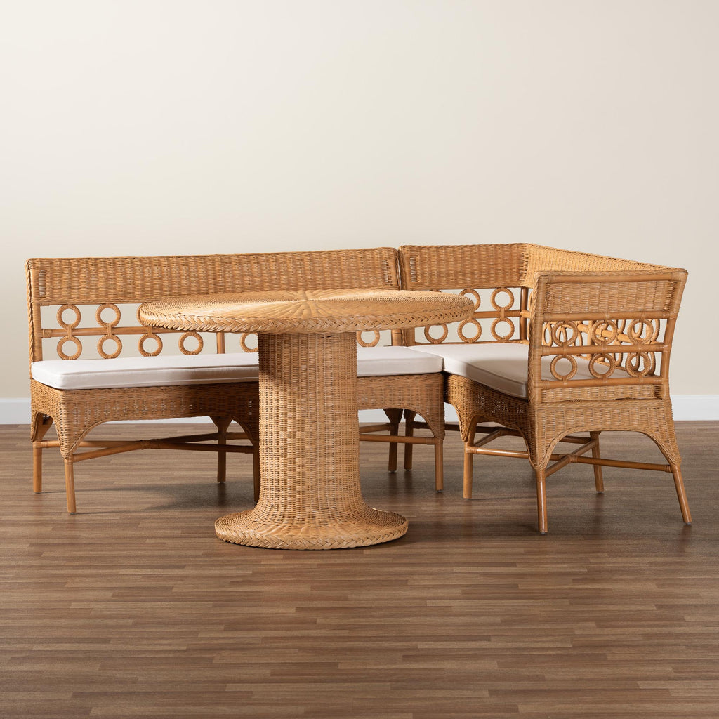 bali & pari Monica Bohemian Light Honey Rattan 3-Piece Dining Nook Set