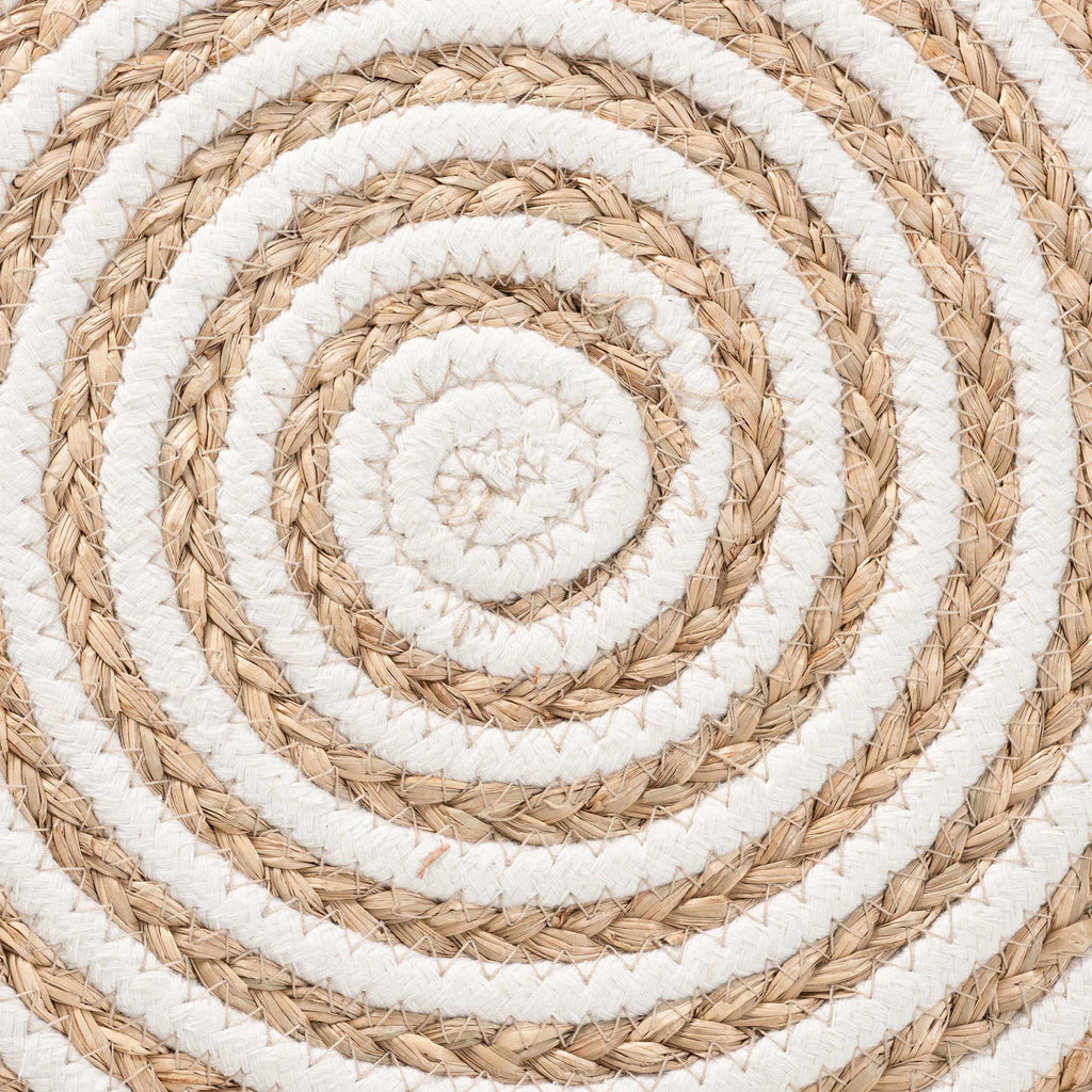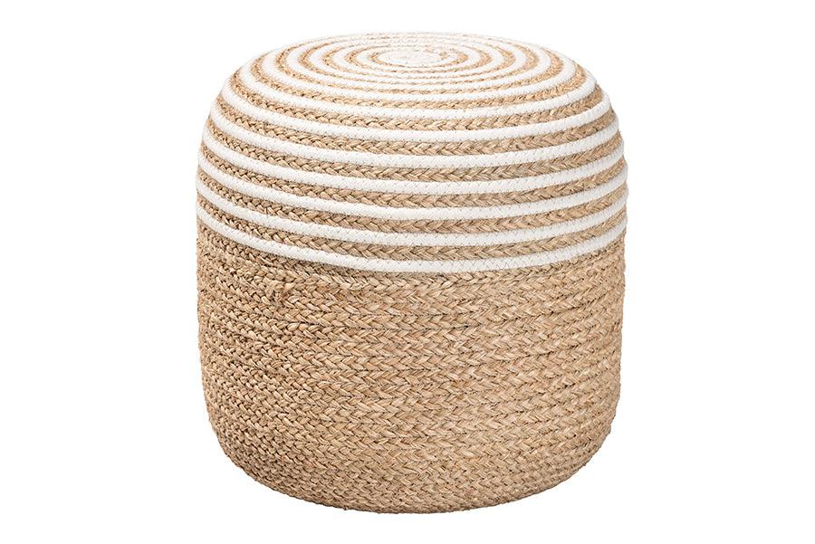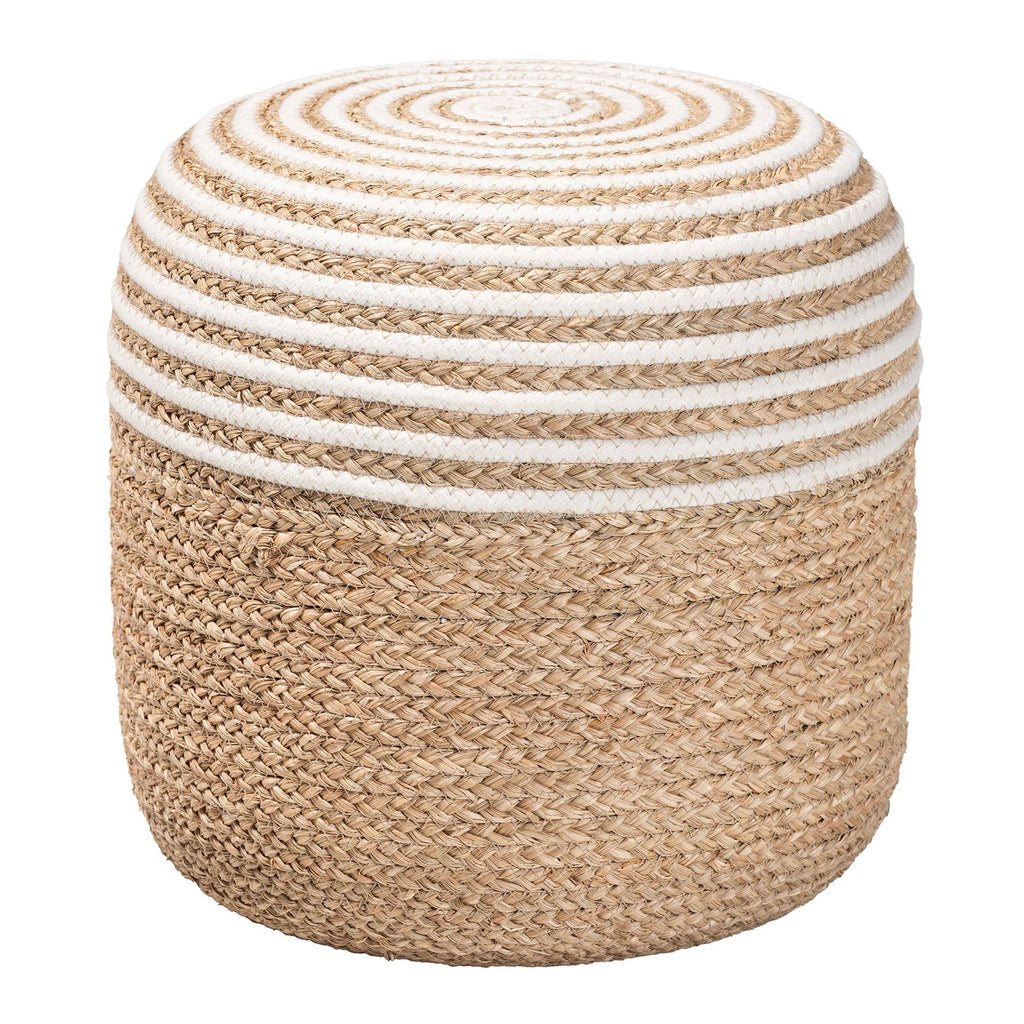 bali & pari Nequiel Modern Bohemian Seagrass and Woven Rope Ottoman Footstool