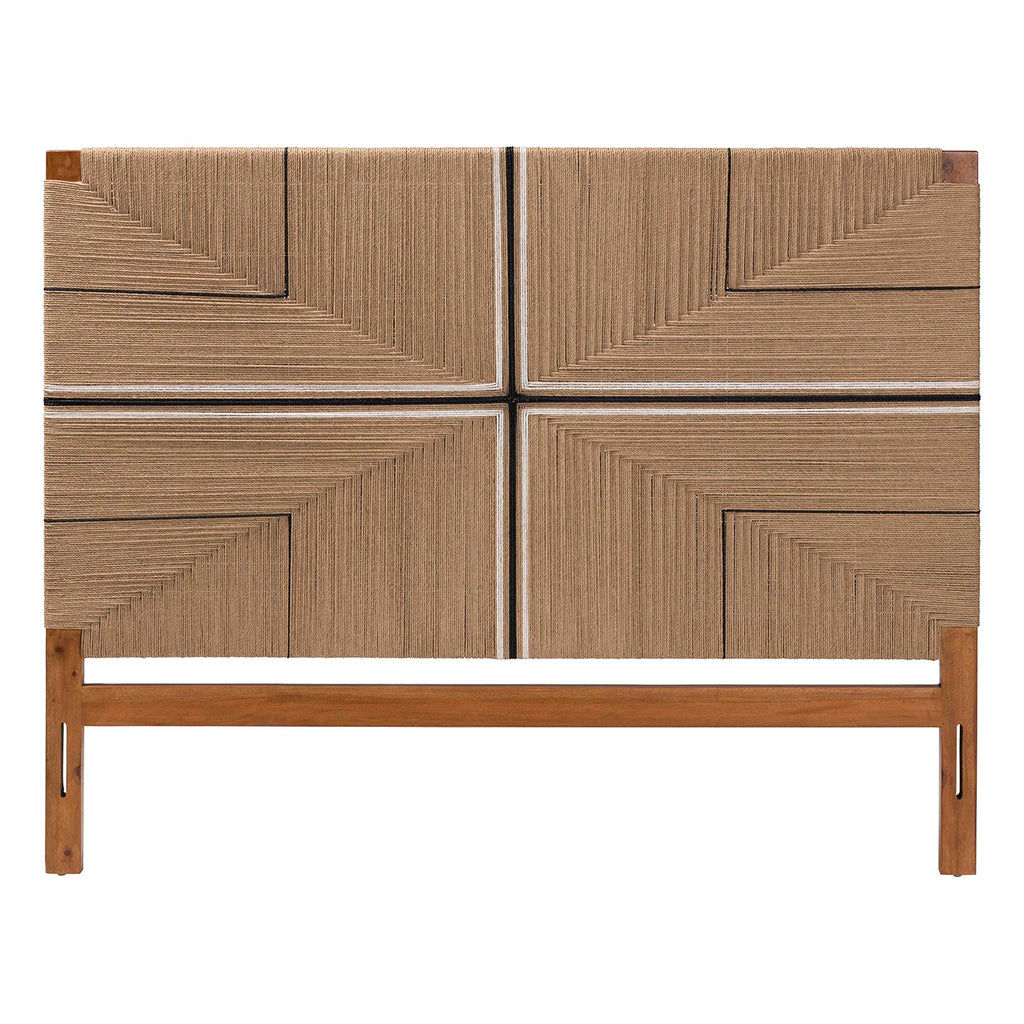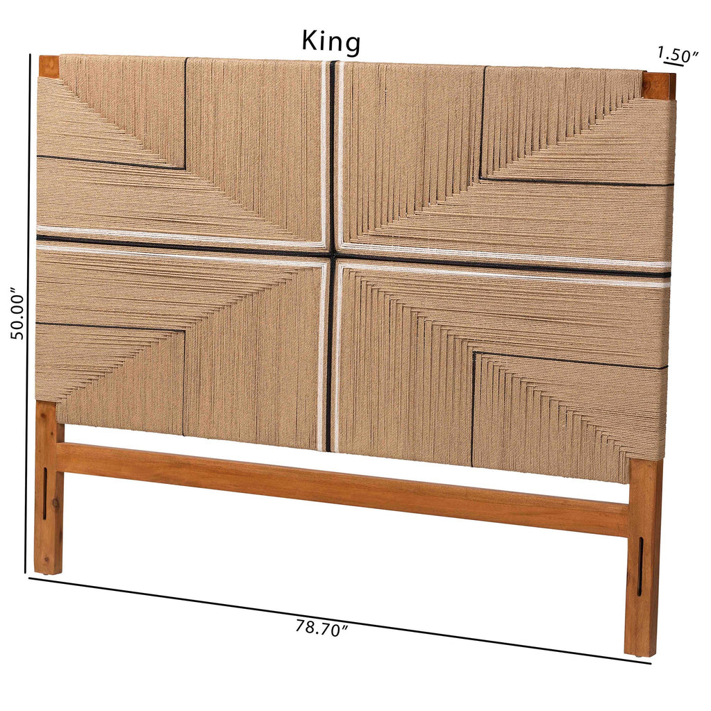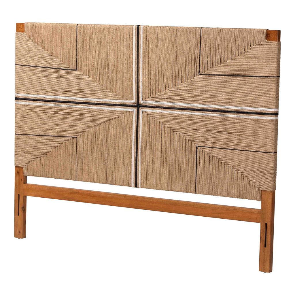 bali & pari Prita Paper Loom Headboard with Mahogany Wood Frame, Handwoven Bed Backrest Panel with Geometric Design, Boho Rustic Bedroom Accent,