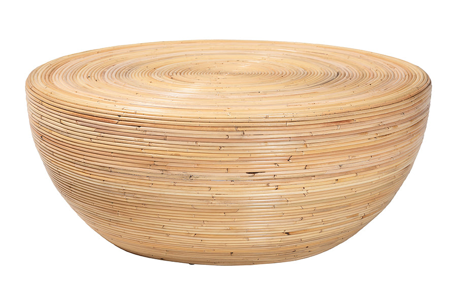 bali & pari Tokyo Laminated Rattan Coffee Table - Handcrafted Bowl-Shaped Center Table for Living Room, Coastal Boho Style Furniture in