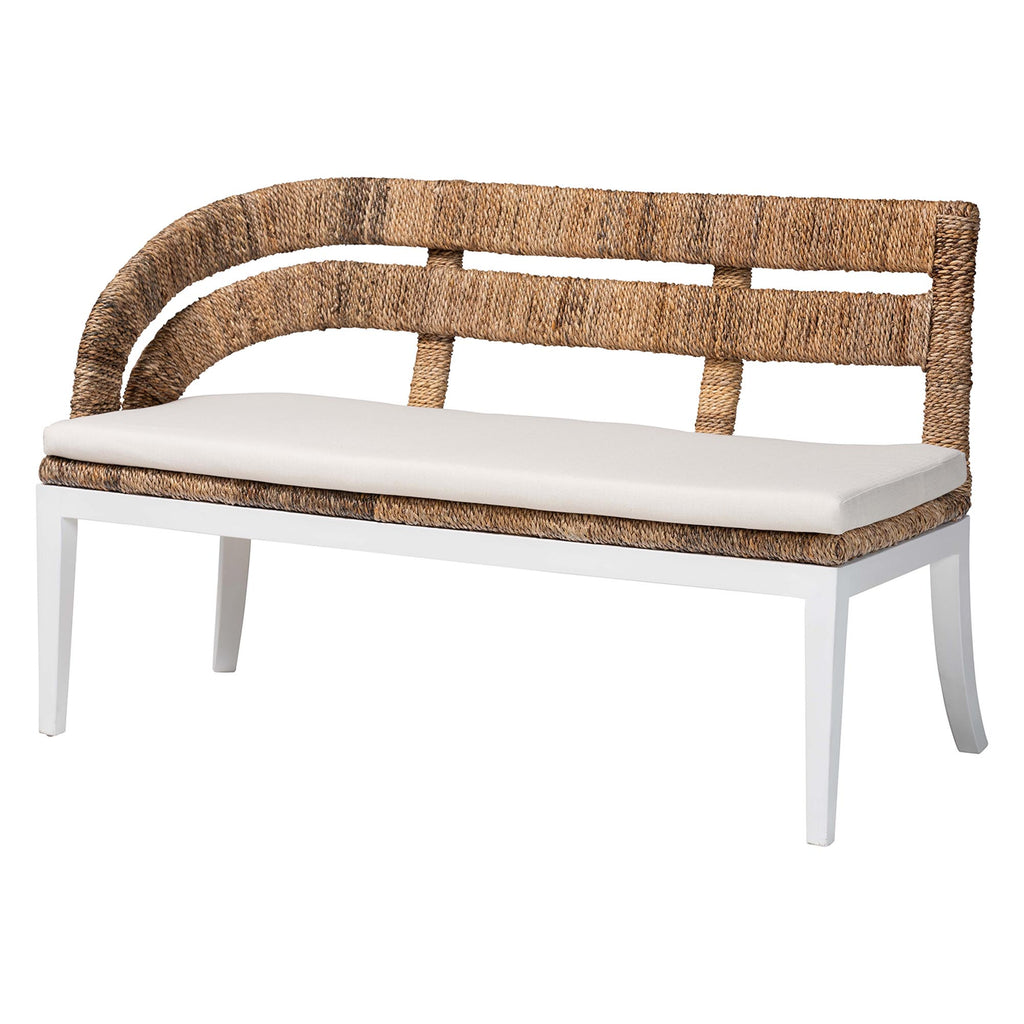 bali & pari Ubud Seagrass Dining Nook Set with Wood Table, Cushioned L-Shaped Bench and Chairs - Coastal Farmhouse Breakfast Corner Furniture Set for Kitchen or Dining Room, 5-Piece