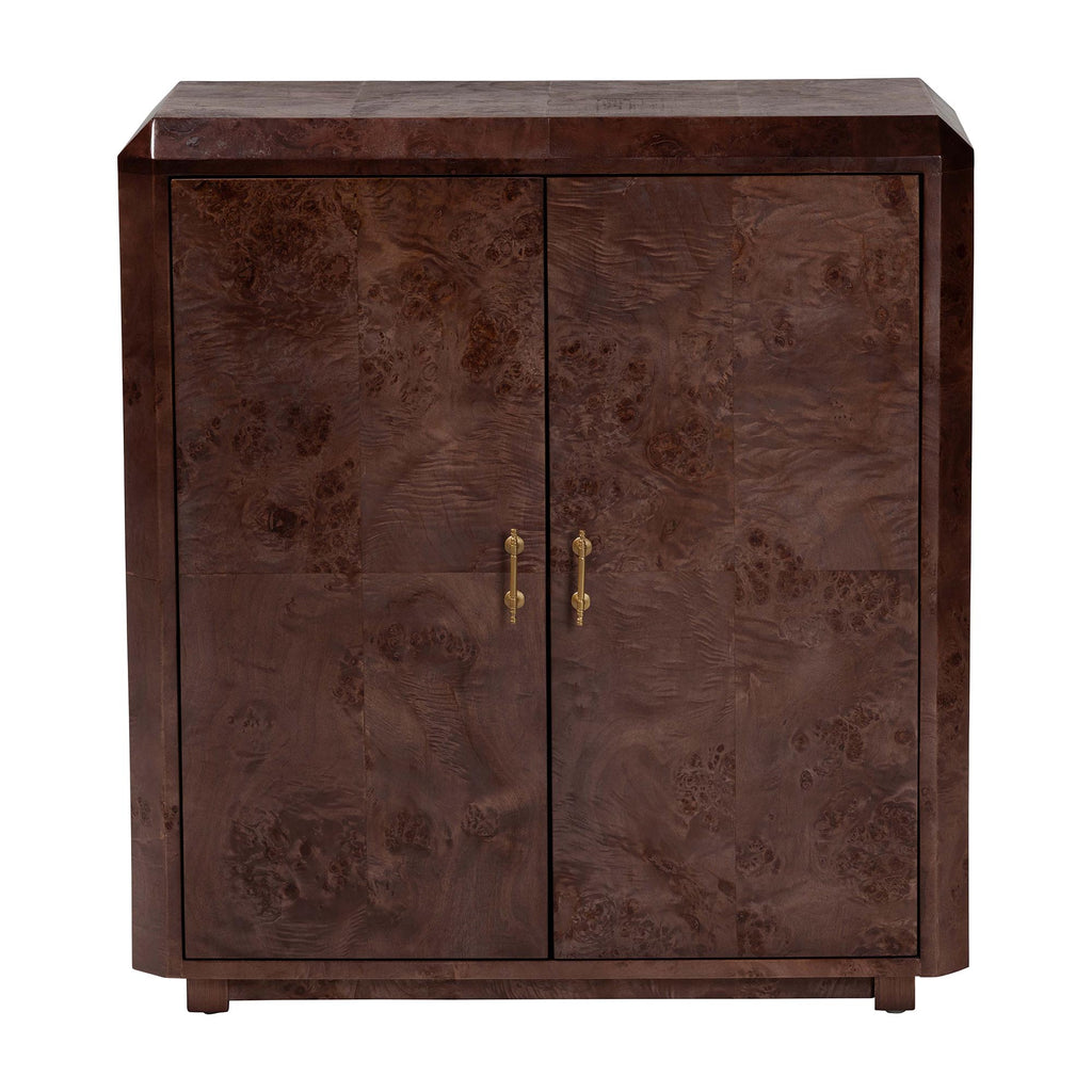 bali & pari Valora Real Burl Wood Storage Cabinet in Dark - Modern Accent Cupboard with Double Doors and Brass Handles, Elegant Sideboard for Living Room, Entryway or Dining Area