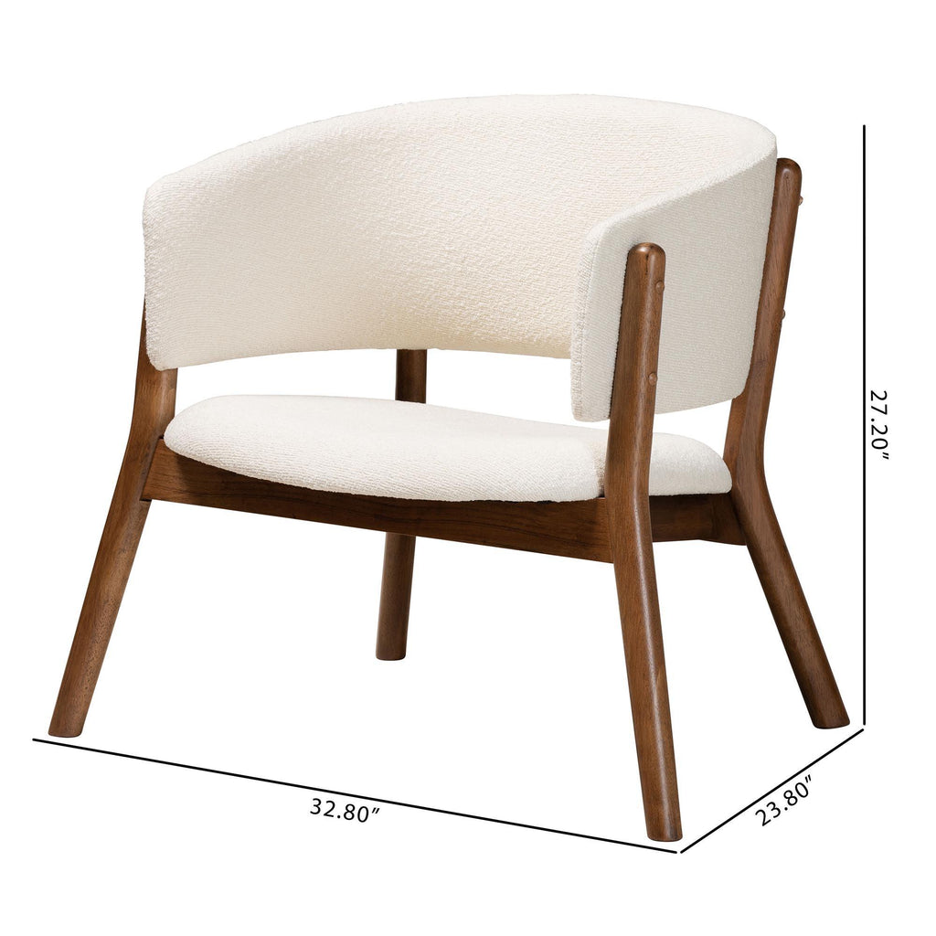 Baron Mid-Century Modern Cream Boucle Fabric Upholstered and Finished Wood 2-Piece Living Room Accent Chair Set