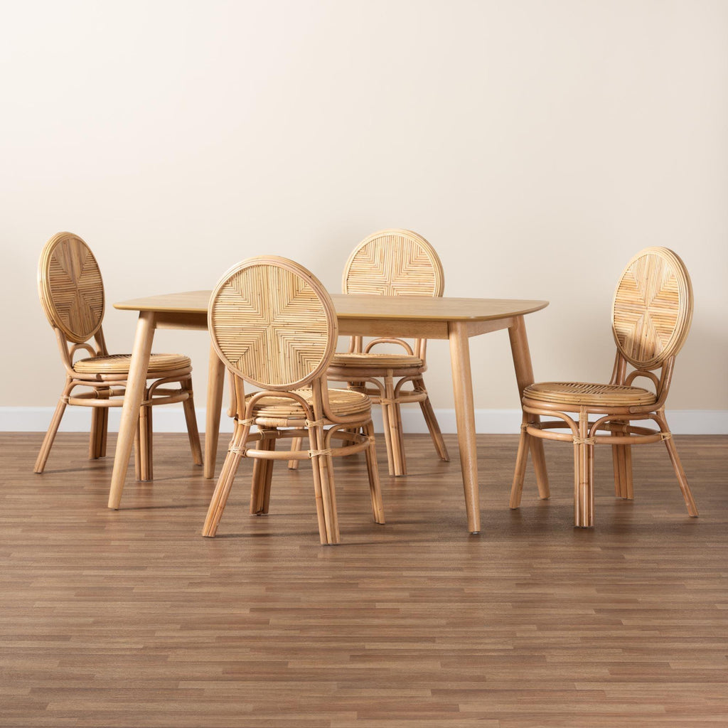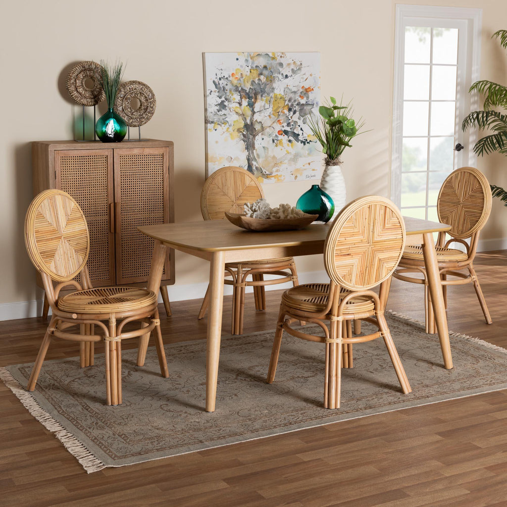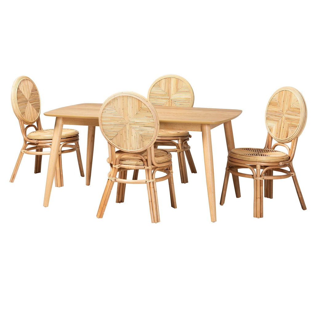 Carita Modern Bohemian Rattan 5-Piece Dining Set
