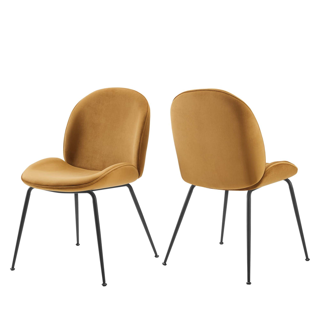 Scoop Black Powder Coated Steel Leg Performance Velvet Dining Chairs Set of 2