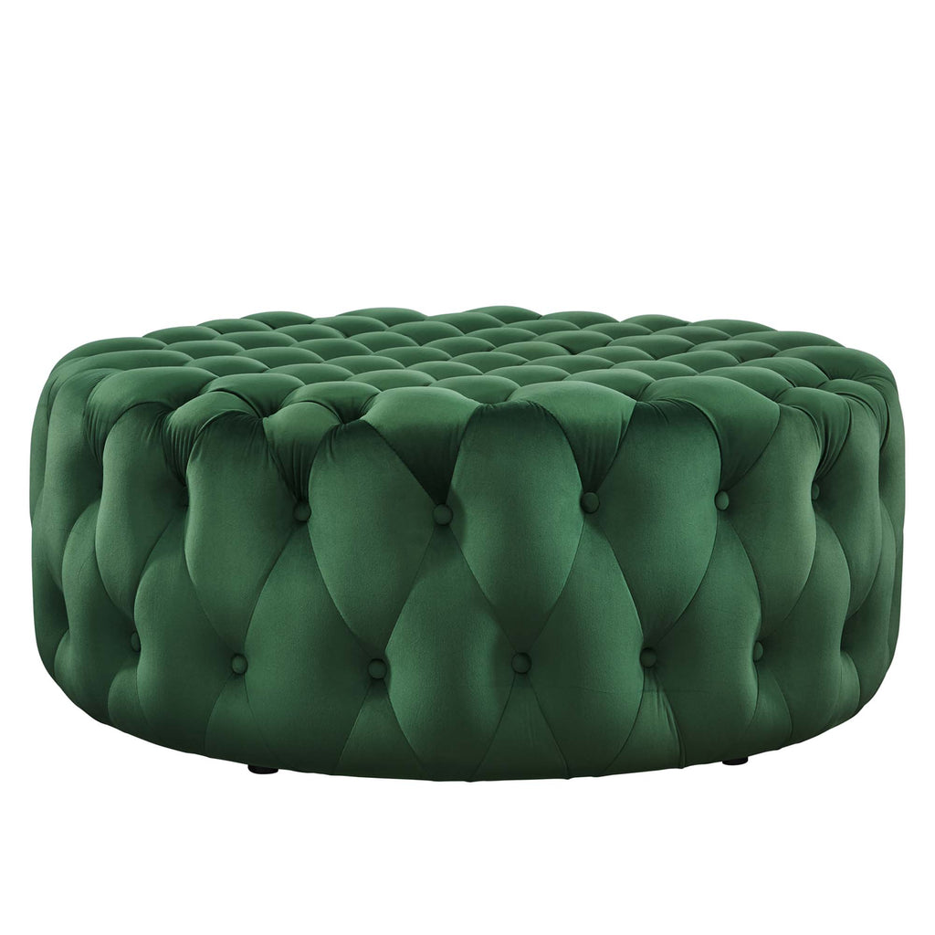 Amour Tufted Button Large Round Performance Velvet Ottoman