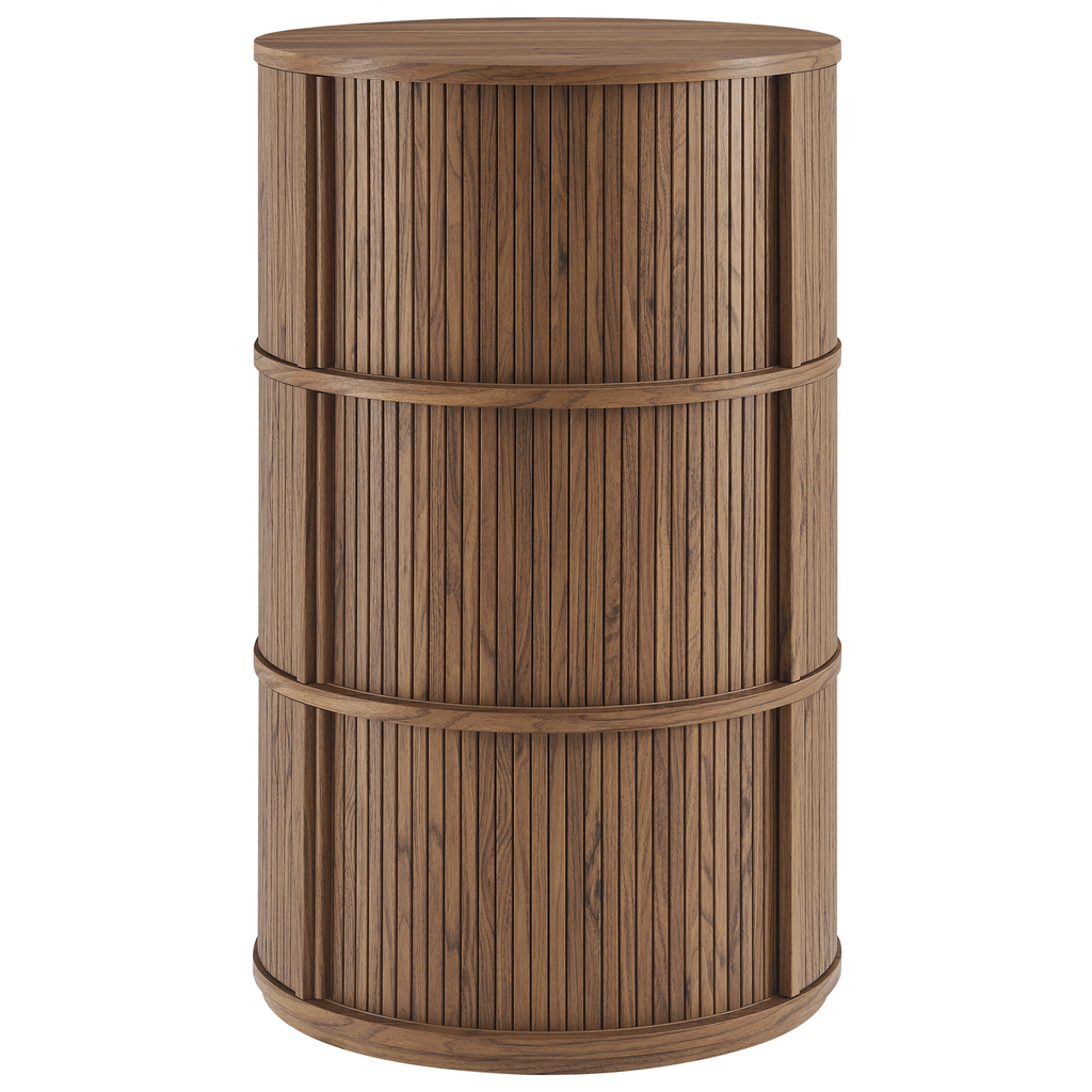Clement Round Pedestal Stand Storage Table With Sliding Tambour Doors