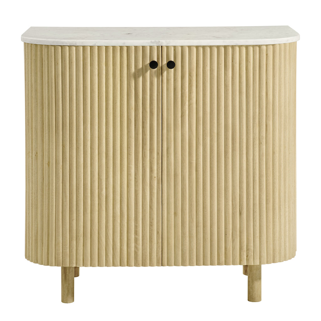 Caldera 33" Curved Solid Wood and Marble Accent Storage Cabinet