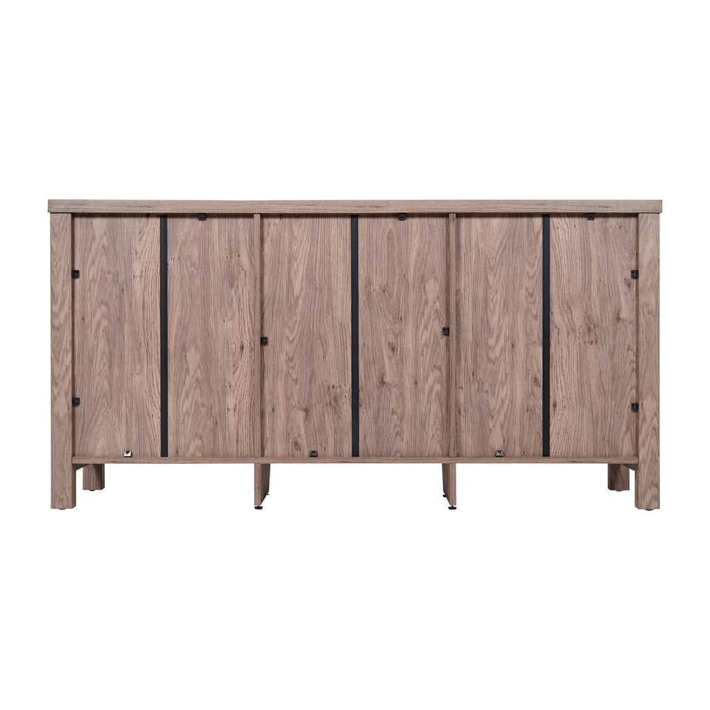 Dion Modern Kitchen and Dining Room Buffet Sideboard Storage Cabinet, Engineered Wood with 2 Tempered Glass Doors, 2 Drawers, Open Shelf