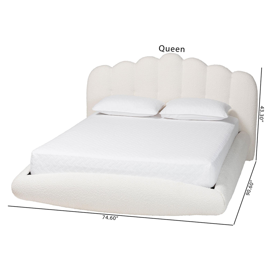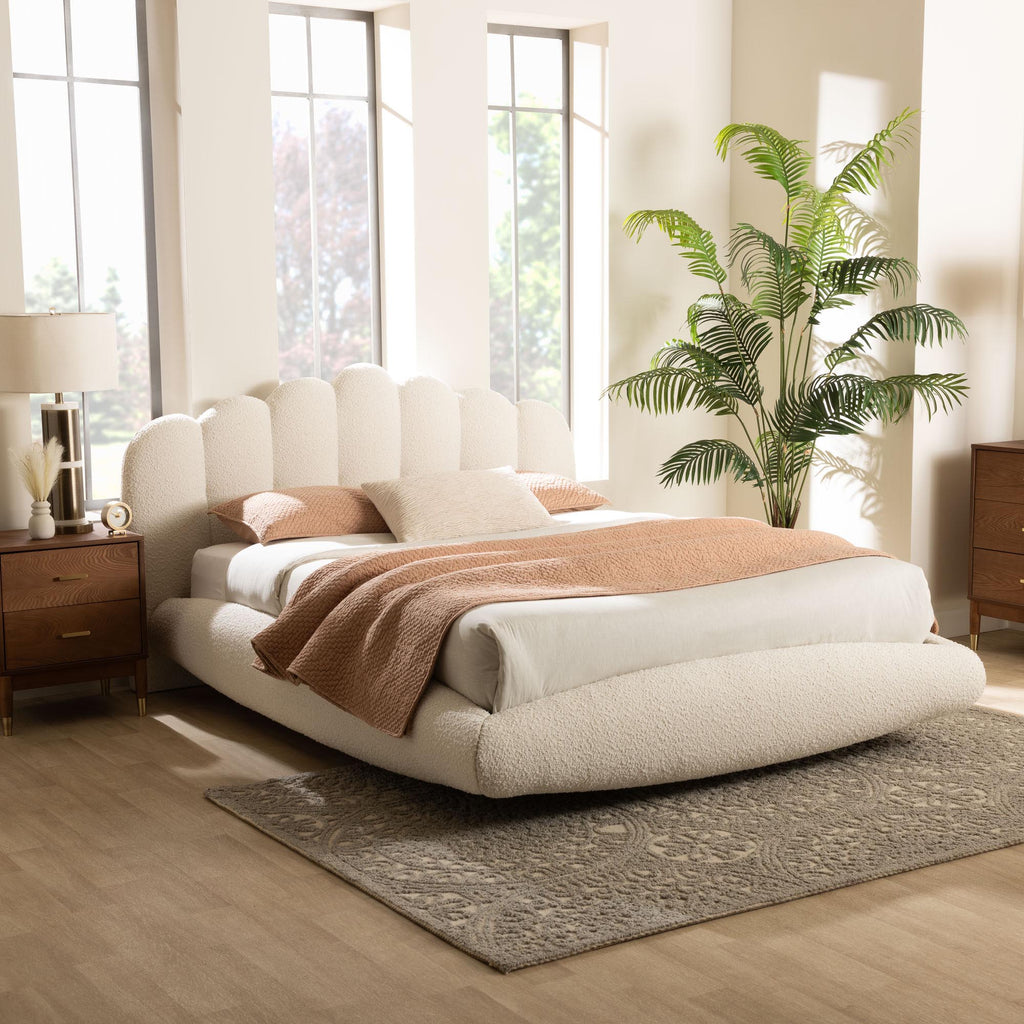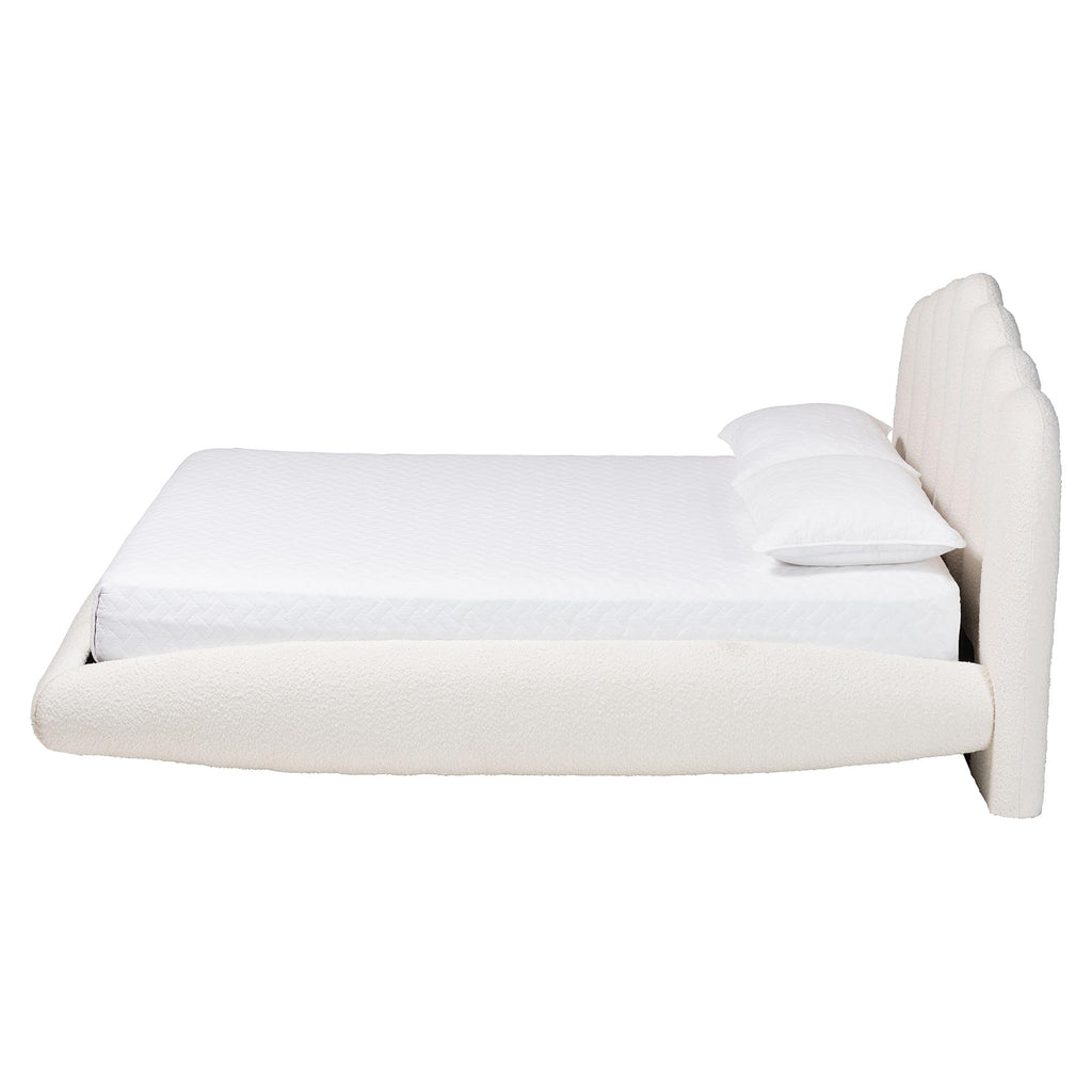 Grenier Modern Cream Boucle Fabric Floating Bed