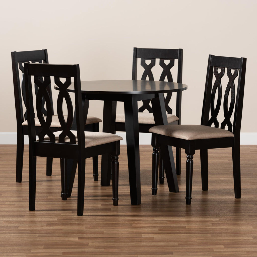 Heidi Modern and Contemporary Sand Fabric Upholstered and Finished Wood 5-Piece Dining Set