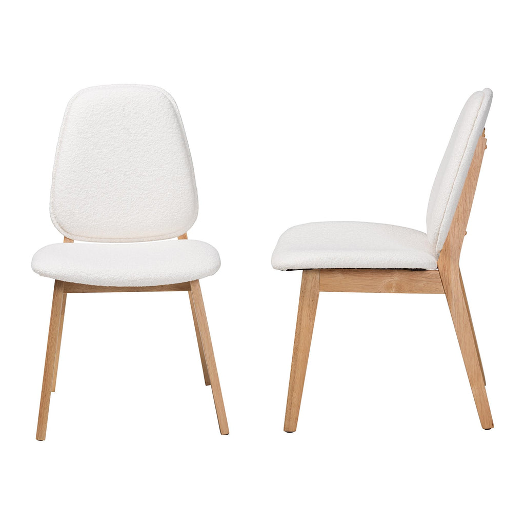 Hudson Boucle Upholstered Dining Chair Set of 2- Mid-Century Modern Side Chair with Solid Wood Frame and Rounded Backrest, and