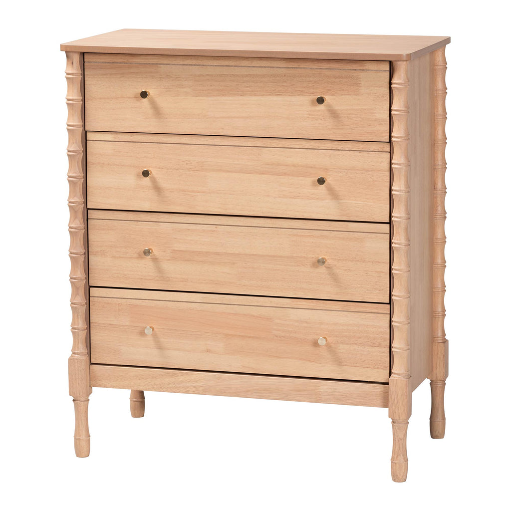 Laurent Bamboo-Style 4-Piece Bedroom Set - Spindle Platform Bed with Matching Dresser, Chest, and Nightstand, Cottage Farmhouse Style,