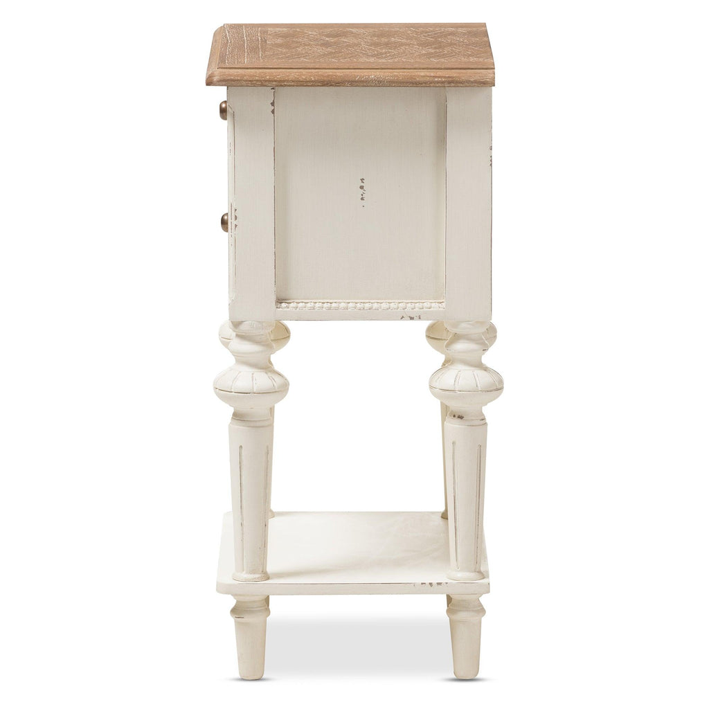 Marquetterie French Provincial Style Weathered and Wash Distressed Finish Wood Two-Tone 2-Drawer and 1-Shelf Nightstand