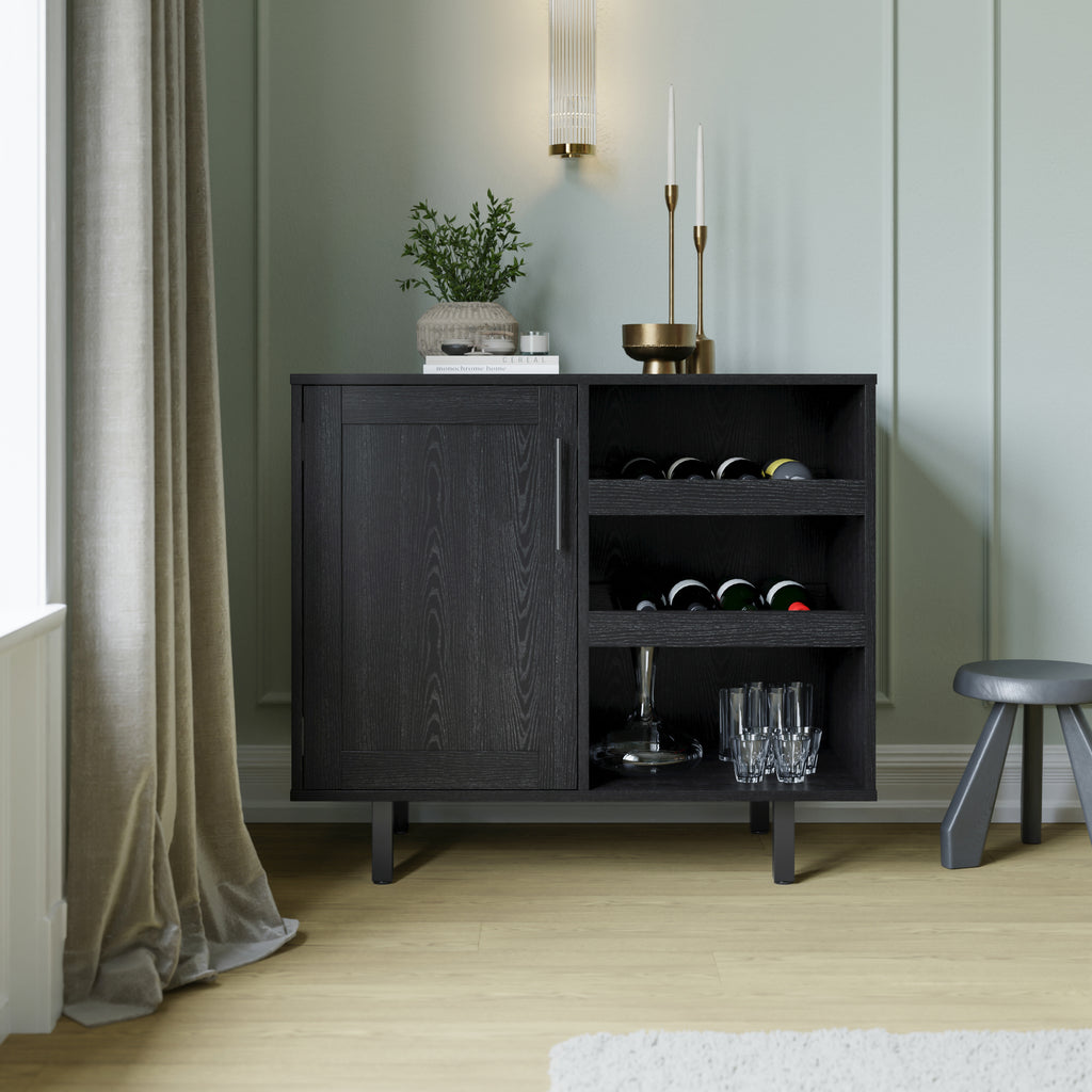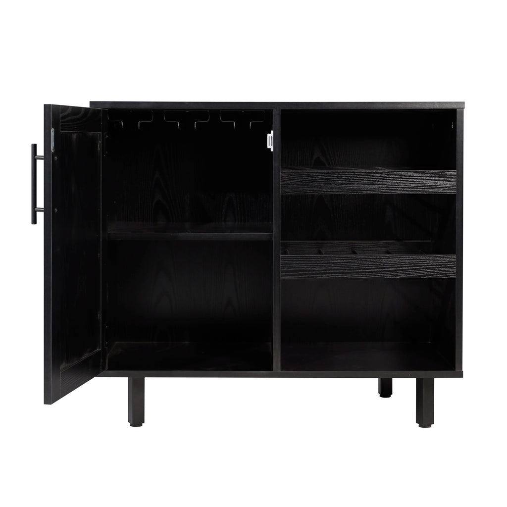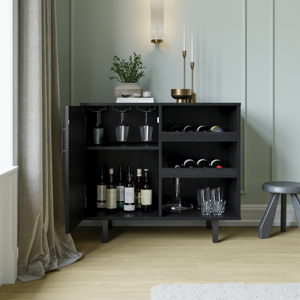 Elmont Classic Bar and Sideboard with Shaker Style Single Door Cabinet with Hanging Glass Storage and Open Bottle Shelves