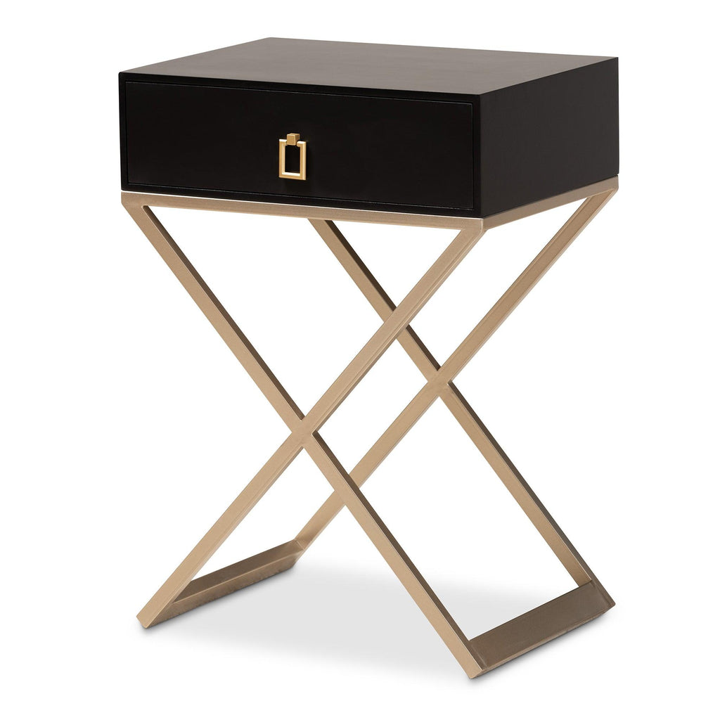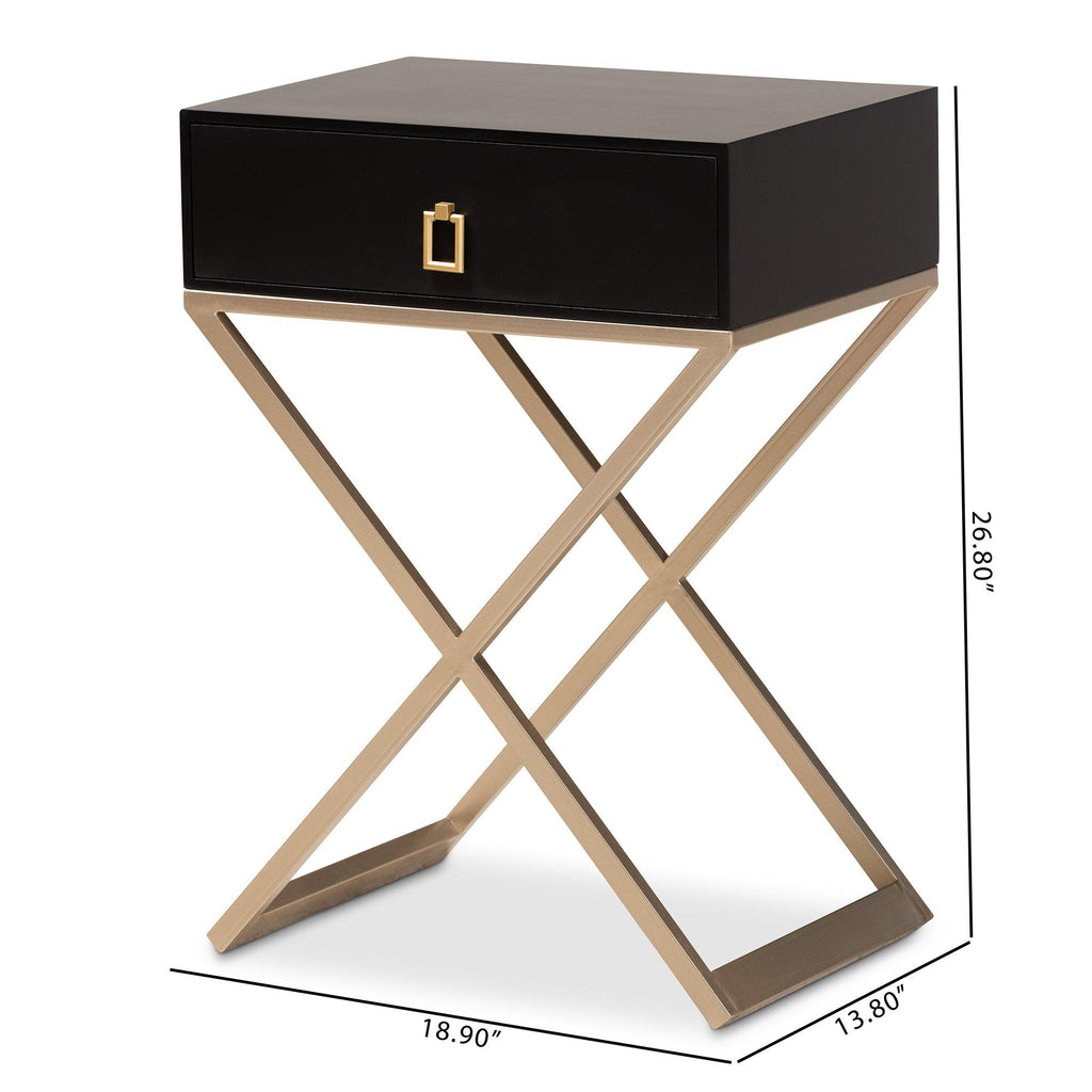 Patricia Modern and Contemporary Finished Wood and Powder Coated Brass Effect Metal 1-Drawer End Table