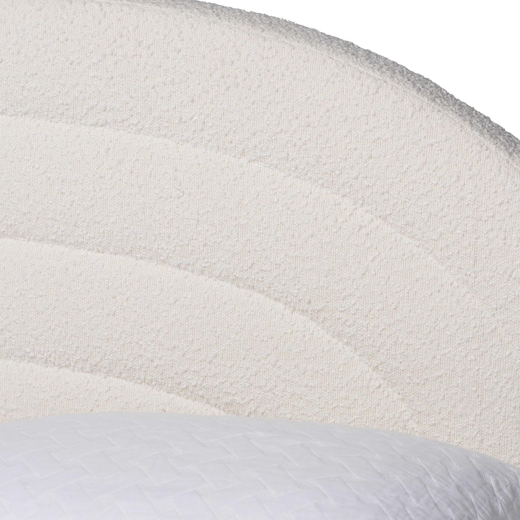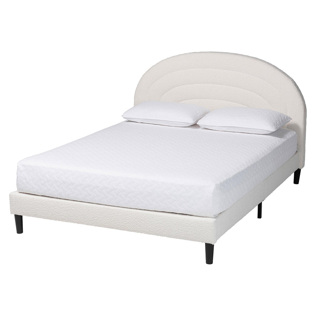 Pelagia Boucle Upholstered Platform Bed - Soft Fabric Bed Frame with Padded Headboard, Minimalist Design, Cream