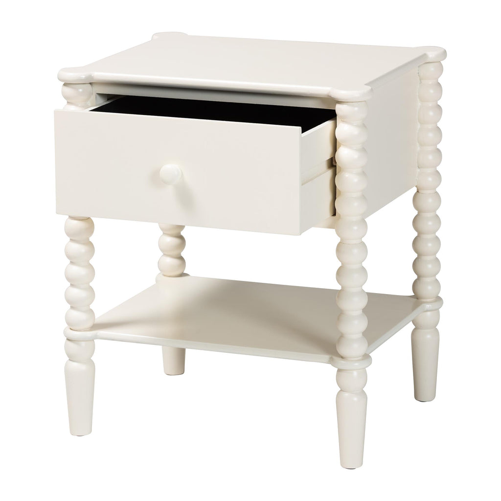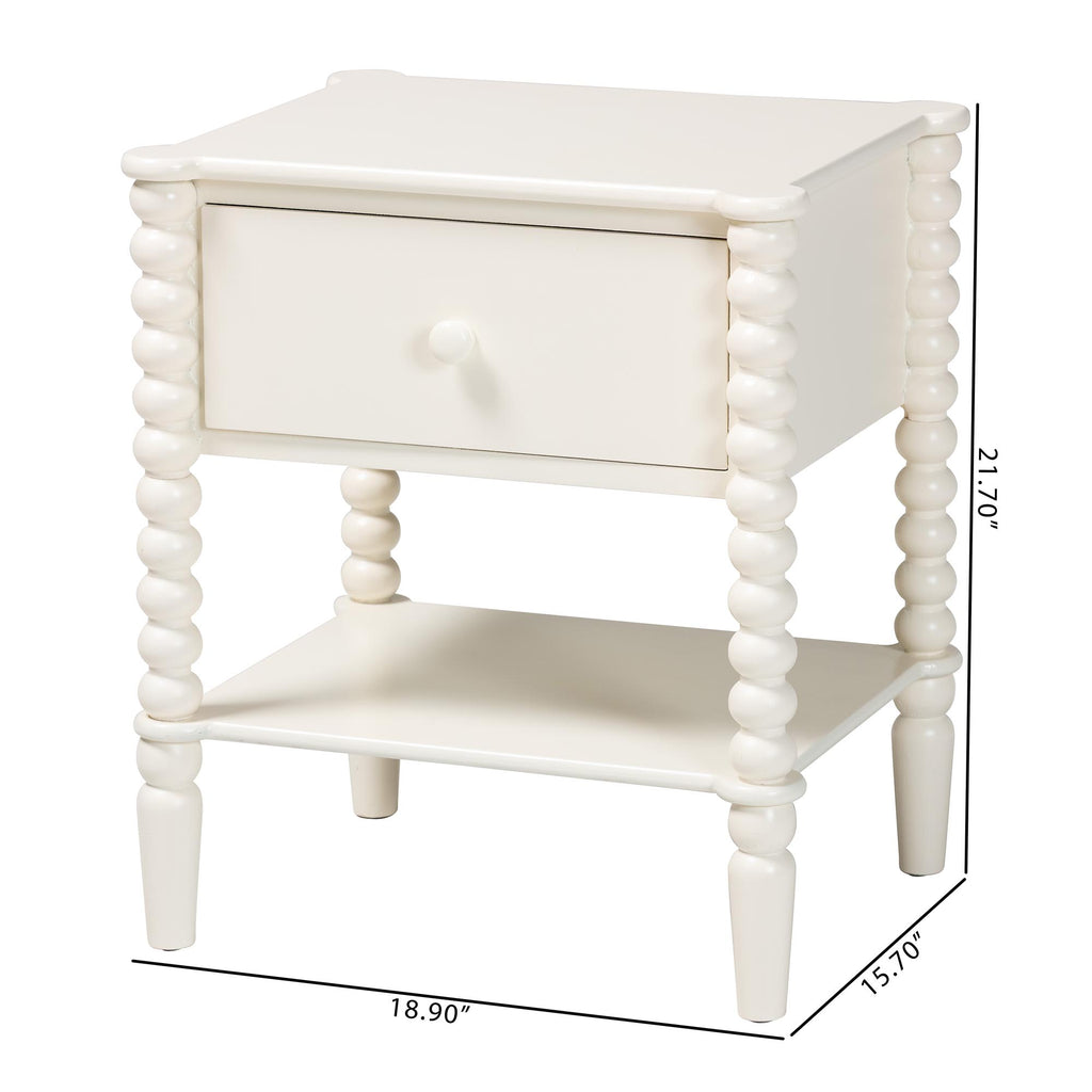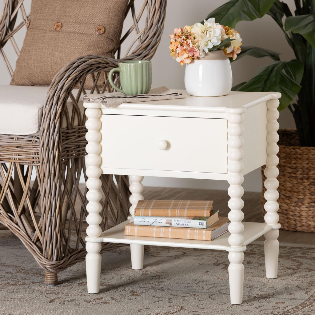 Rimona End Table with Bobbin Legs - 1-Drawer Accent Table with Spindle Turned Legs and Open Shelf, Cottage Farmhouse Style Side Table for Living Room