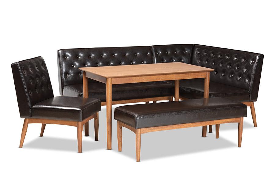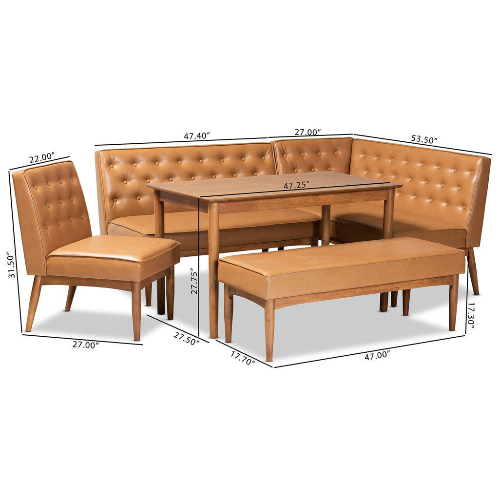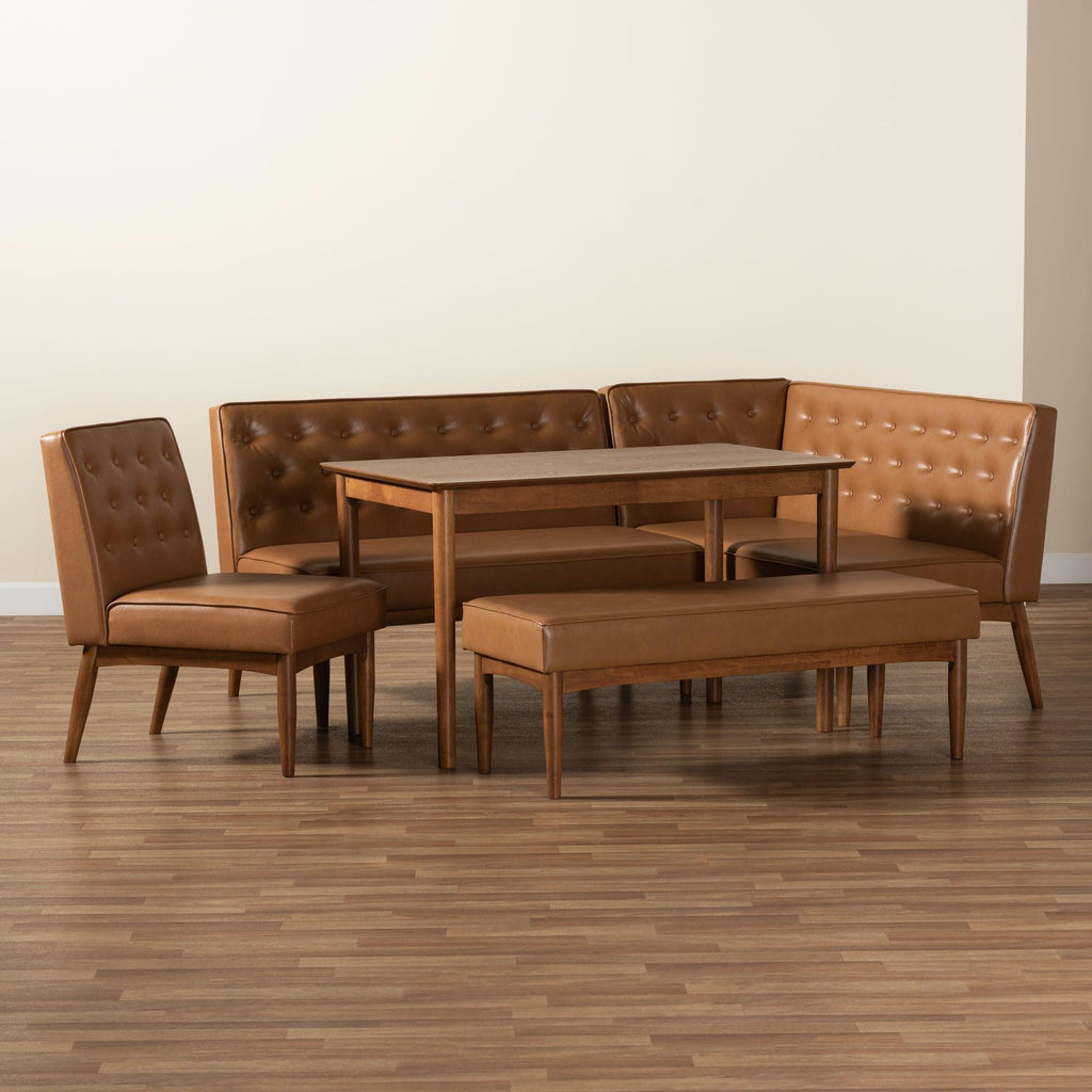 Riordan Mid-Century Modern Faux Leather Upholstered and Finished Wood 5-Piece Dining Nook Set
