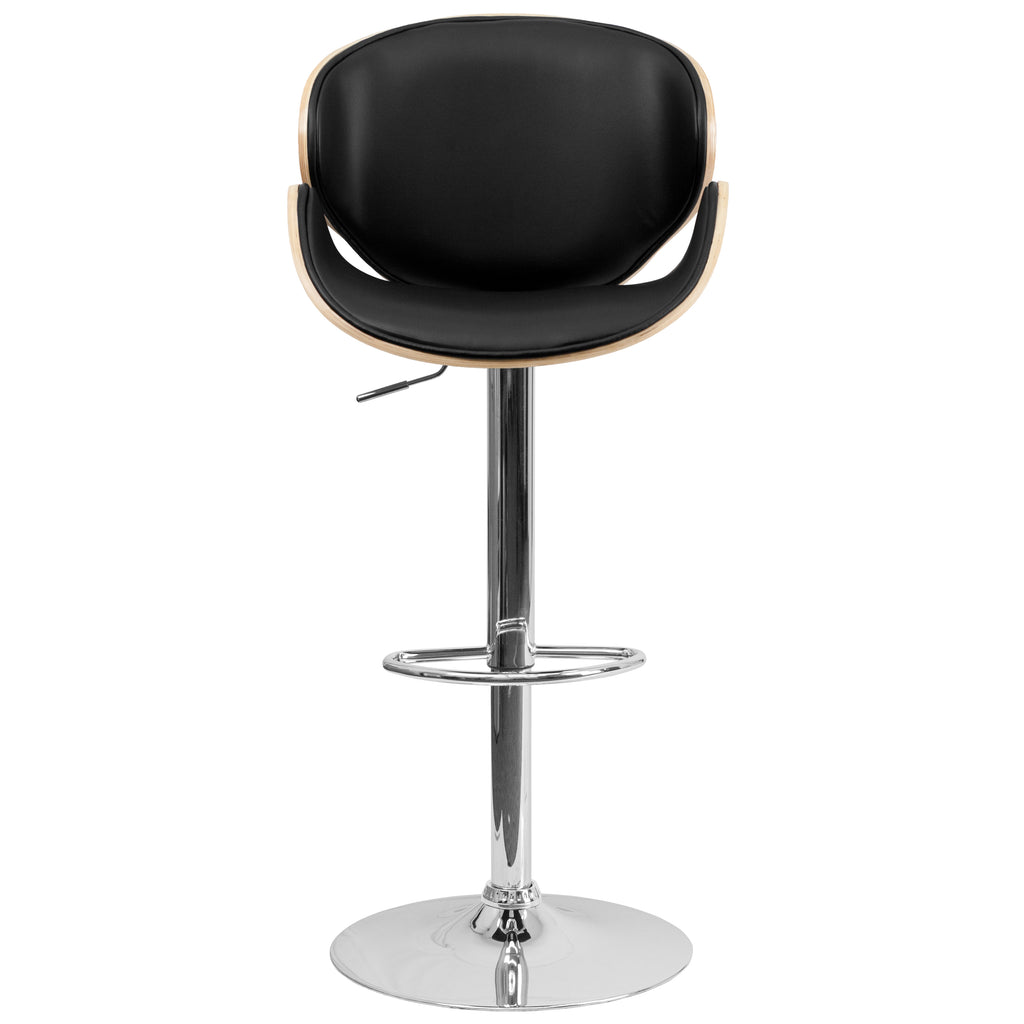 Bentwood Adjustable Height Barstool with Curved Vinyl Seat and Back