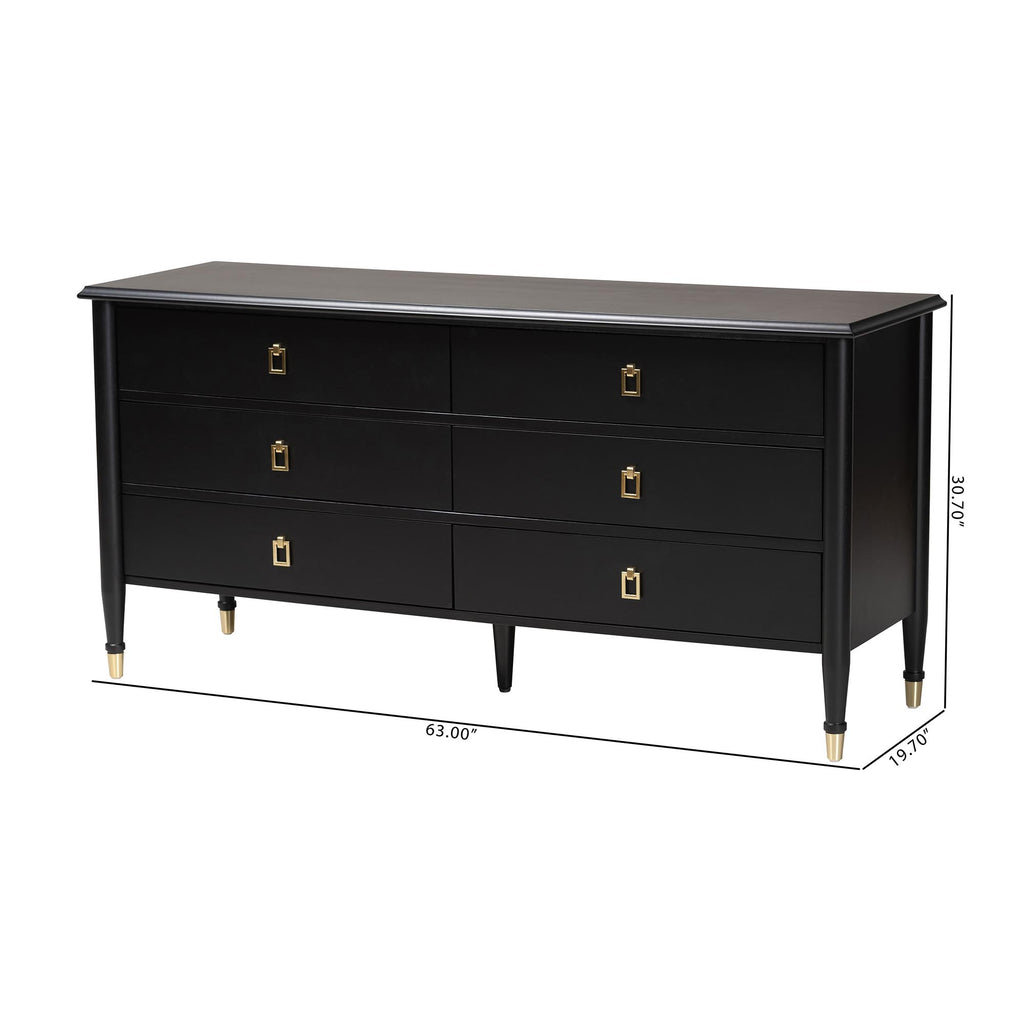 Tamra Wood Dresser with Drawers - Bedroom Storage Unit with Metallic Accents, 6-Drawer Modern Transitional Bedroom Storage Solution