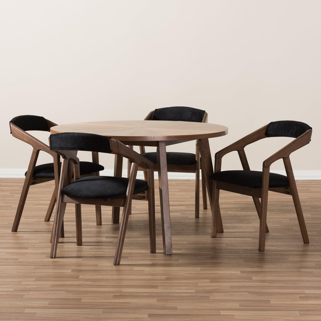 Wendy Mid-Century Modern Fabric and Medium Wood Finishing Dining Set