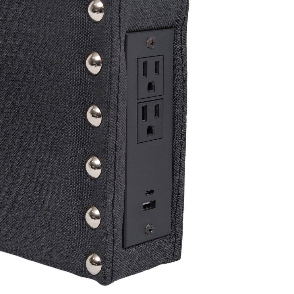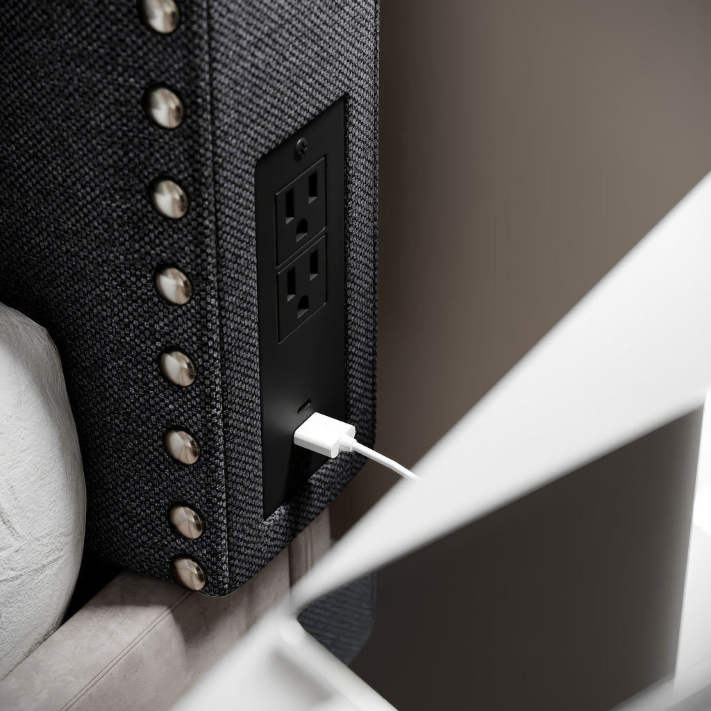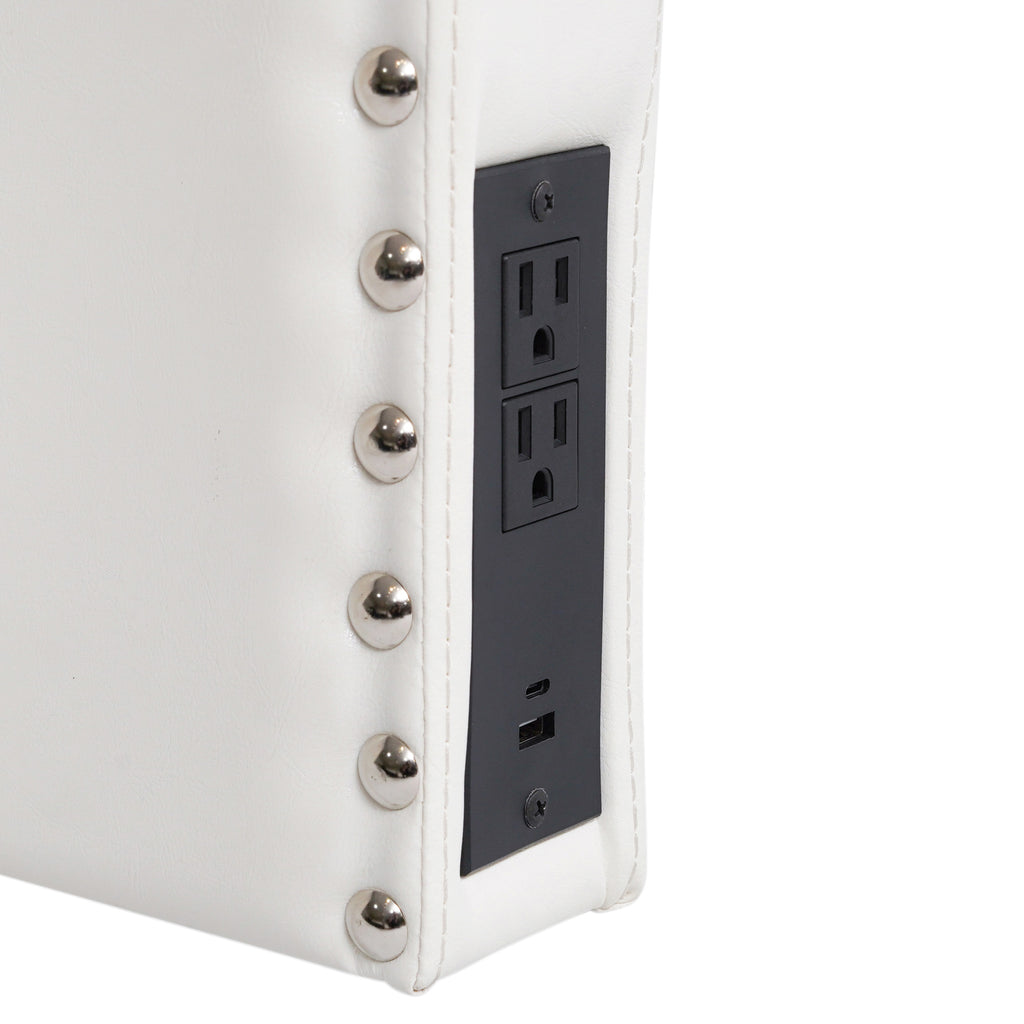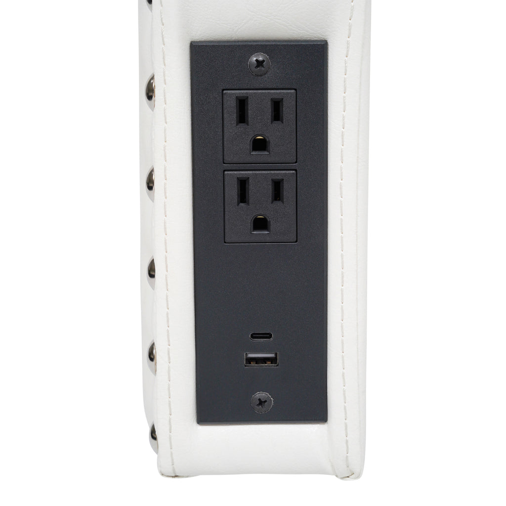 Adeline Contoured Headboard with 2 Power Outlets, 1 USB and 1 USB Type-C Port with Studded LeatherSoft Upholstery and Dual Hanging Options